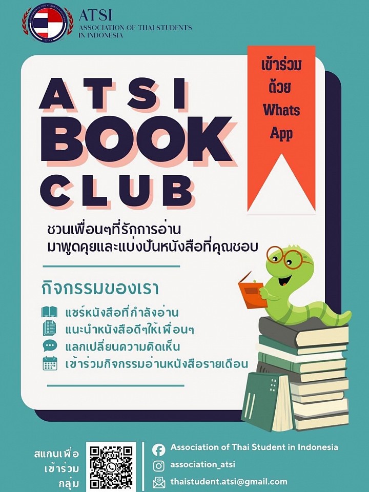 ATSI Book Club is a community activity for people who are interested in reading. It provides a space to share, recommend, and discuss books from various genres such as novels, fantasy, non-fiction, business, and psychology. The activity is open to everyone, whether you are a beginner or an experienced reader who wants to build a reading habit and connect with others who enjoy books.